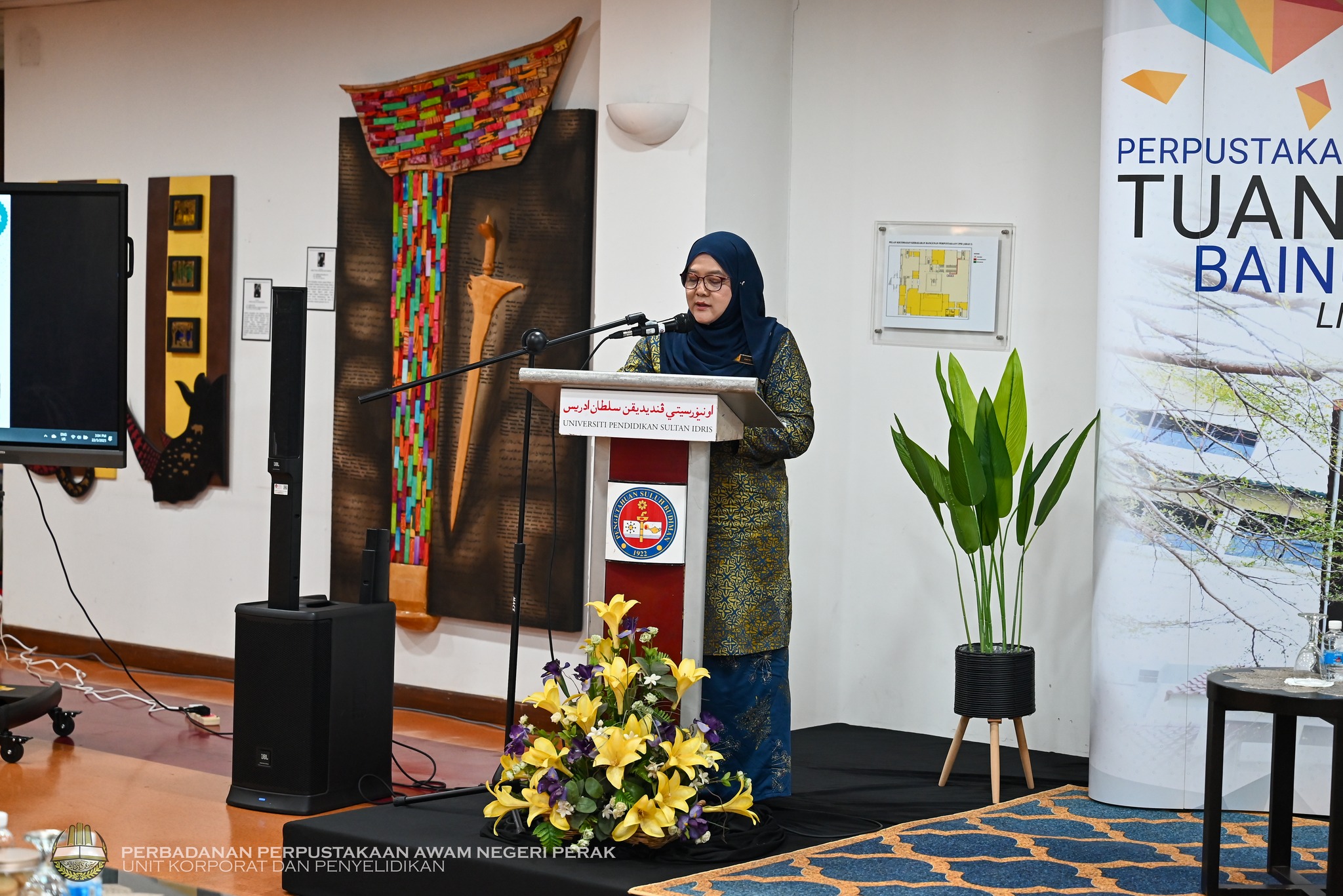 Tanjong Malim, 22 Mei 2025 – Pengarah Perbadanan Perpustakaan Awam Negeri Perak (PPANPk), YBrs. Puan Rafidah binti Abdul Aziz, telah dijemput bagi merasmikan Majlis Perasmian Pameran dan Ceramah Biblioterapi yang berlangsung di Perpustakaan Tuanku Bainun, Universiti Pendidikan Sultan Idris (UPSI). Program ini merupakan anjuran bersama Perpustakaan Tuanku Bainun dan Persatuan Biblioterapi Malaysia (PERBIMA).