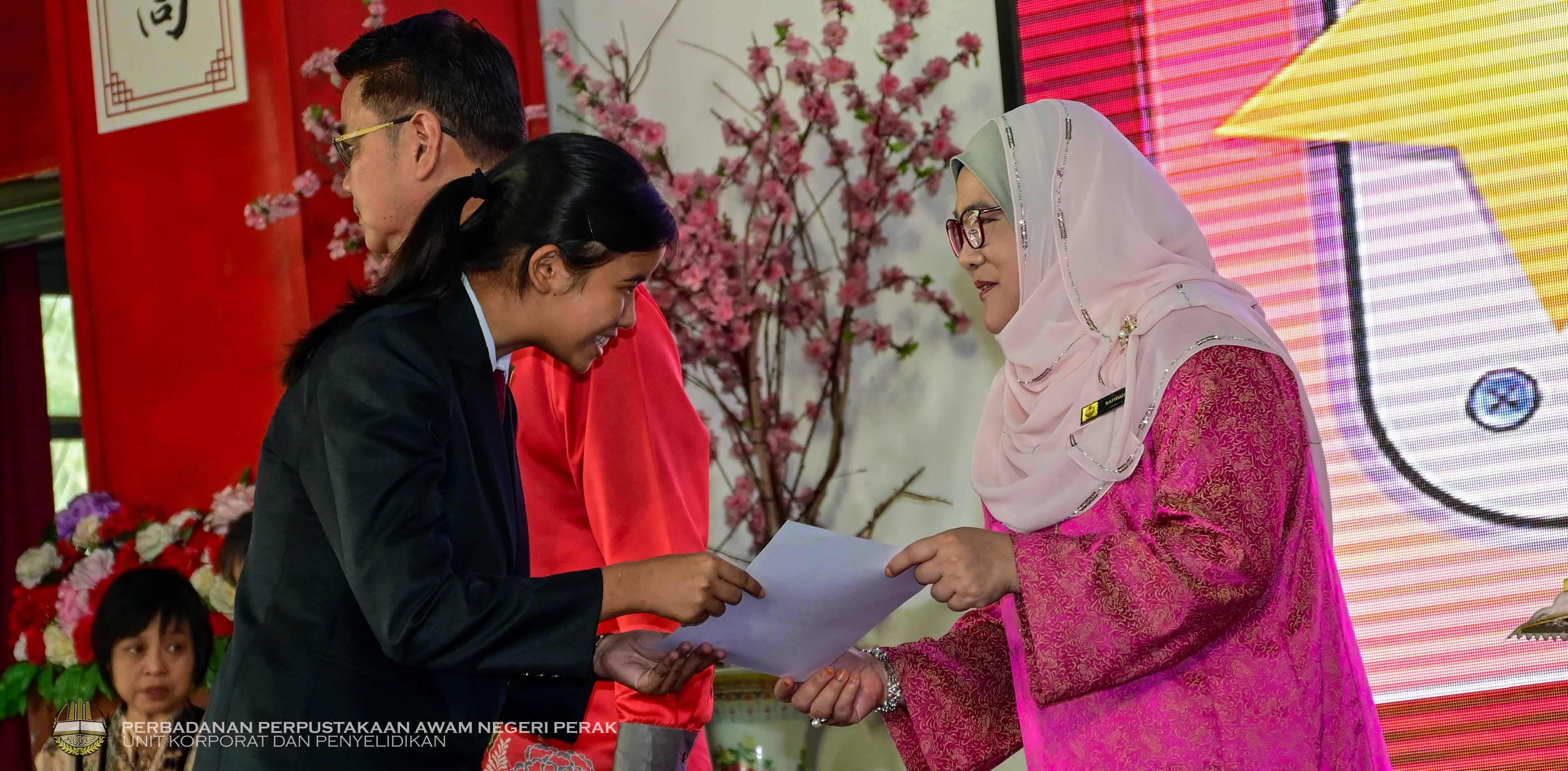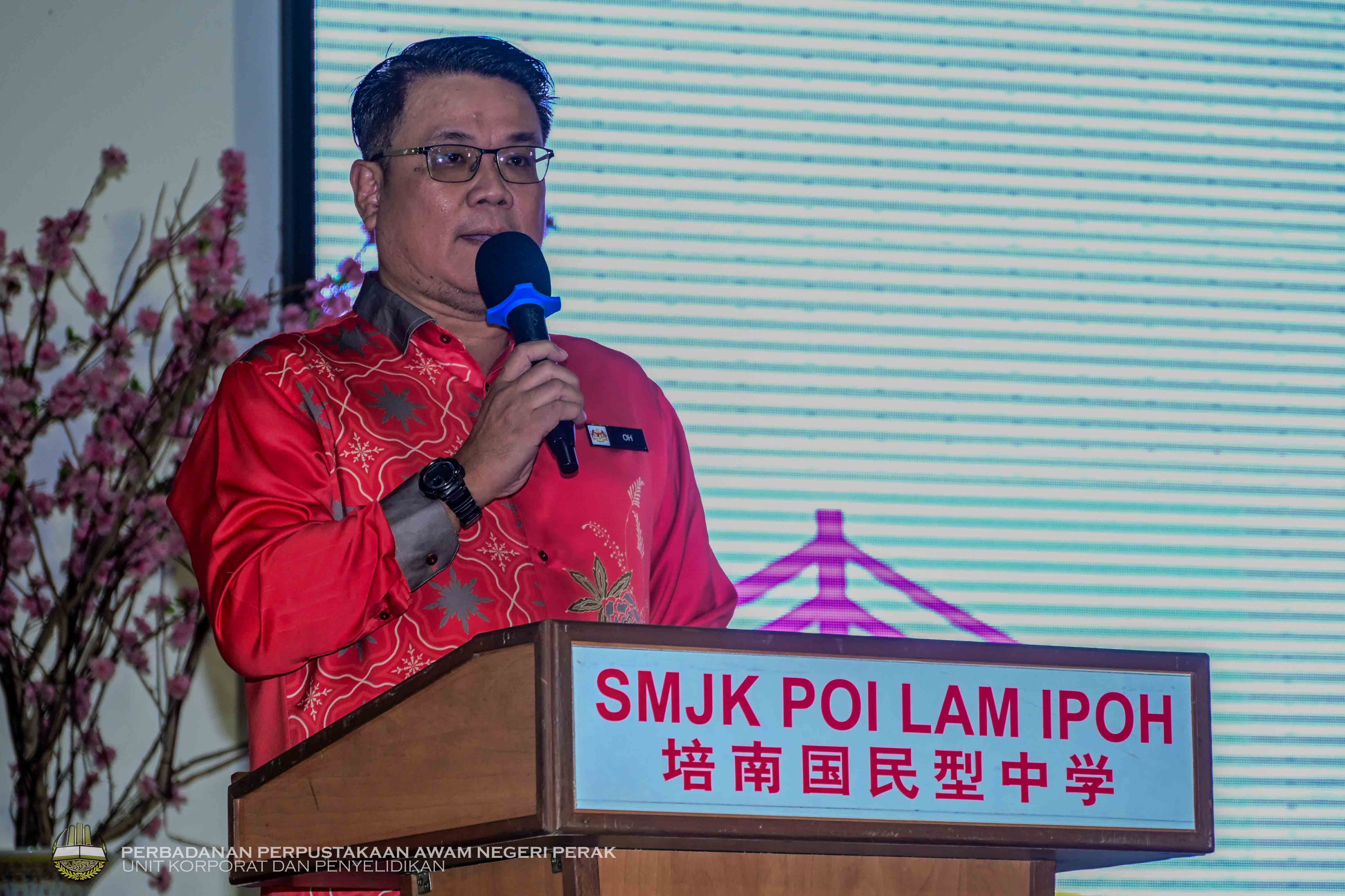 KLEBANG, 21 Februari 2025 - Majlis Pelancaran Program Bacaan Nilam Pusat Sumber SMJK Poi Lam telah dirasmikan oleh Pengarah Perbadanan Perpustakaan Awam Negeri Perak, Puan Rafidah Binti Abdul Aziz bertempat di Pusat Serbaguna Sekolah Menengah Jenis Kebangsaan Poi Lam. Menurut beliau dalam ucapan perasmian, dengan membaca boleh memberi manfaat kepada fizikal dan mental dan di antaranya menjadi medium simulasi kepada otak supaya boleh berfikir dengan baik, membuat keputusan dan menyelesaikan masalah disamping dapat meningkatkan empati individu, mengurangkan tekanan dan meningkatkan perbendaharaan kata.